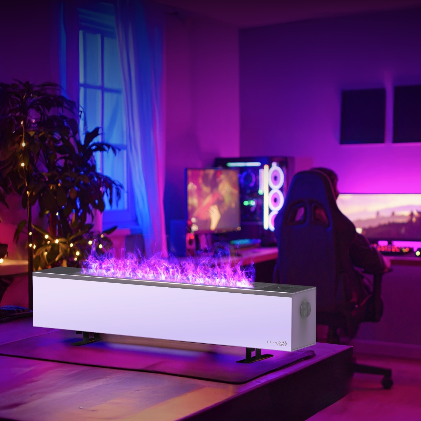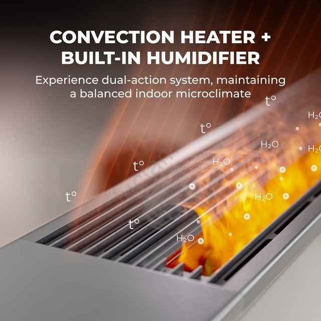 • Presenta un effetto decorativo „fiamme“ grazie all'illuminazione LED e alla vaporizzazione, che ricrea l'atmosfera di un vero fuoco senza fiamme né fumo.