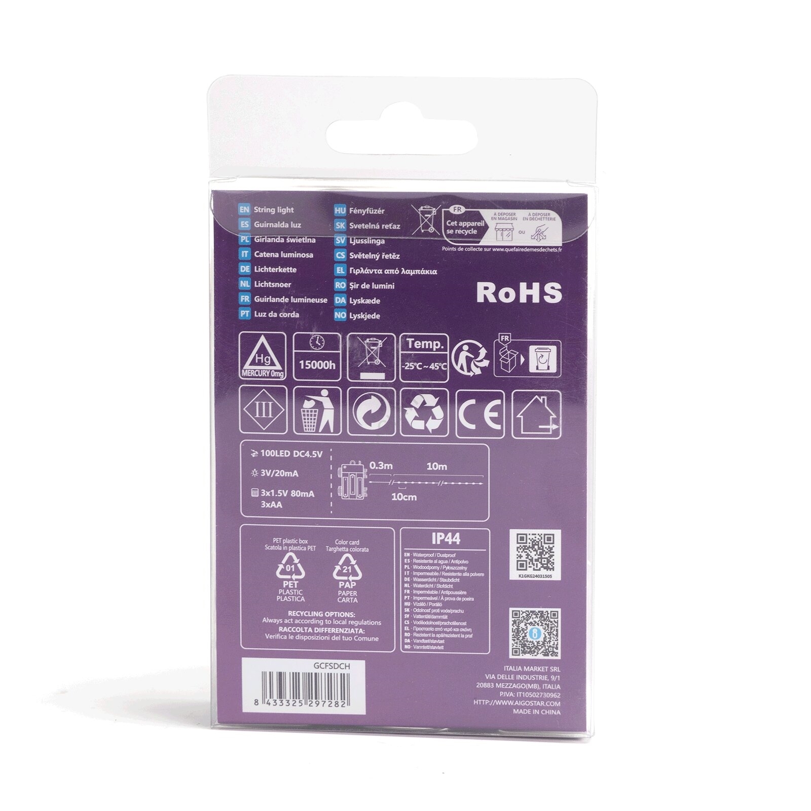 Aigostar - Catena luminosa LED da esterno 100xLED/8 funzioni/3xAA10,3m IP44 multicolore
