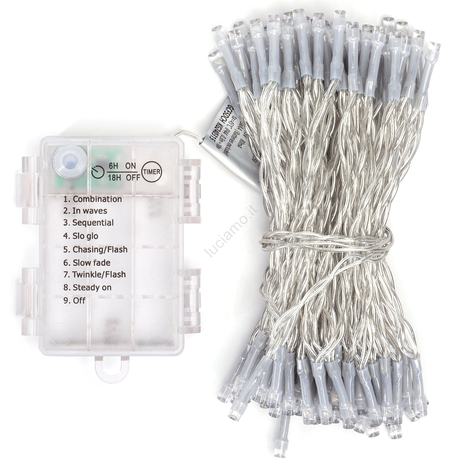 • Aigostar -LED Catena luminosa da esterno 100xLED/8 funzioni 3xAA 10,3m IP44 bianco caldo