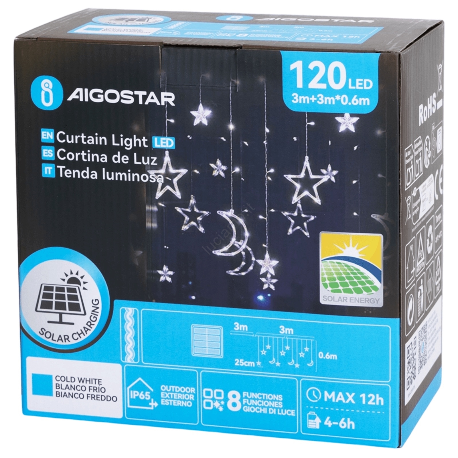 Aigostar - Catena solare a LED 120xLED/8 funzioni 3x0,6m 500 mAh IP65 bianco freddo
