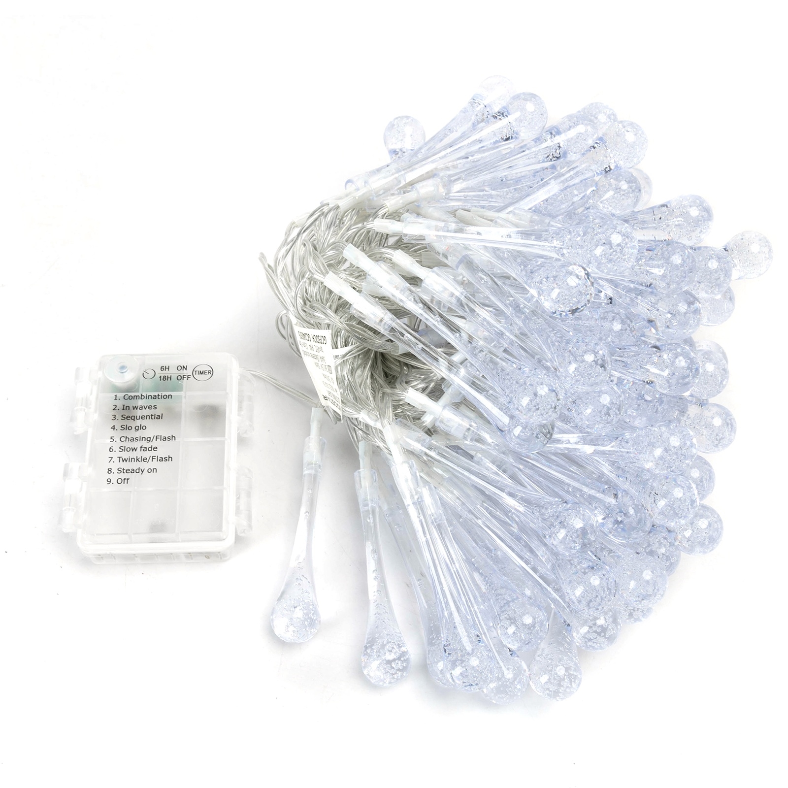 Aigostar - Catena luminosa natalizia da esterno a goccia 100 LED/8 funzioni 3xAA 10 m IP44 multicolore