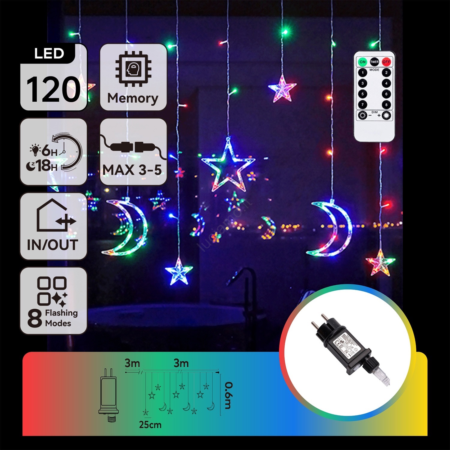 Aigostar - Catena luminosa natalizia LED RGBY da esterno 120xLED/8 funzioni 3x0,6m IP44 multicolore + telecomando