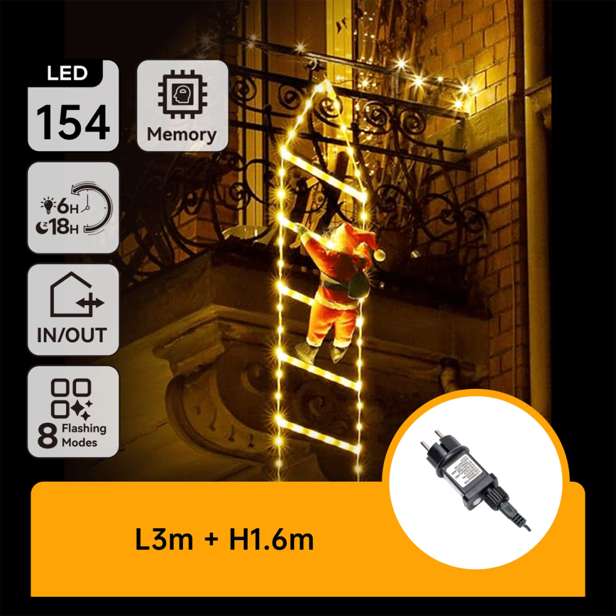 • Aigostar - decorazione natalizia LED da esterno 154xLED/8 funzioni 1,6 m IP44 bianco caldo
