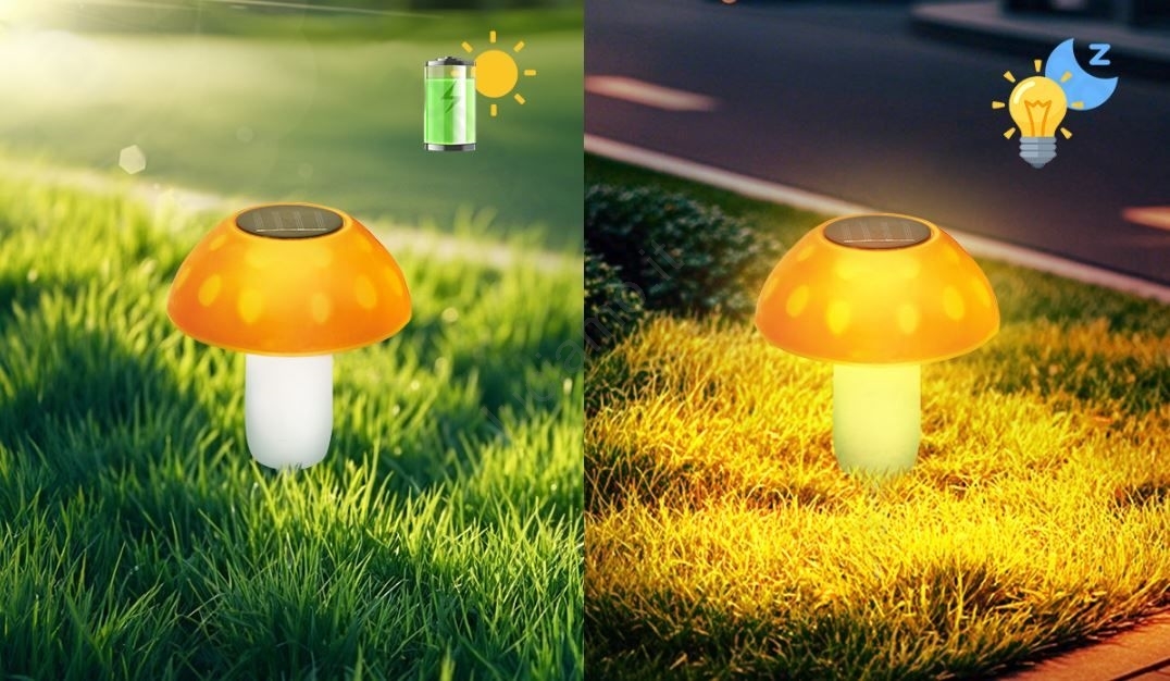 Aigostar - Lampada LED solare LED/0,024W/1,2V 200 mAh 2700K IP44 fungo porcino