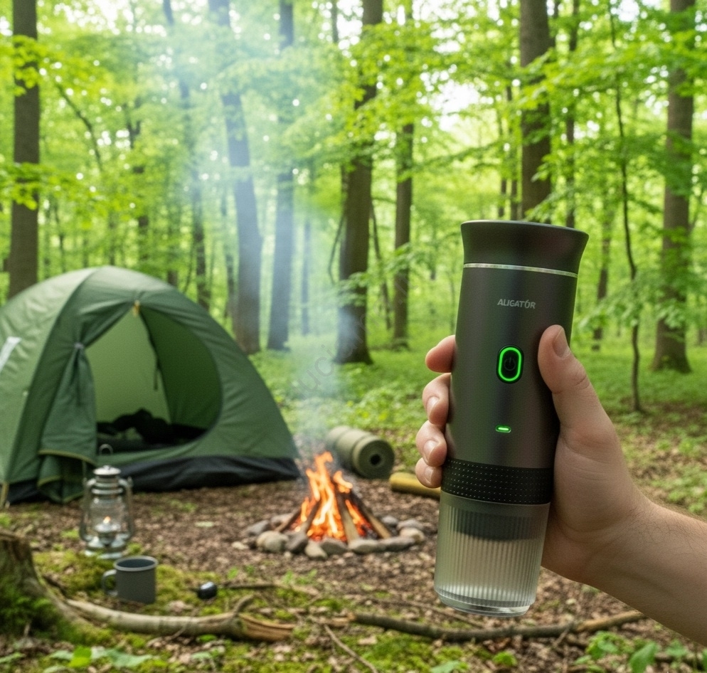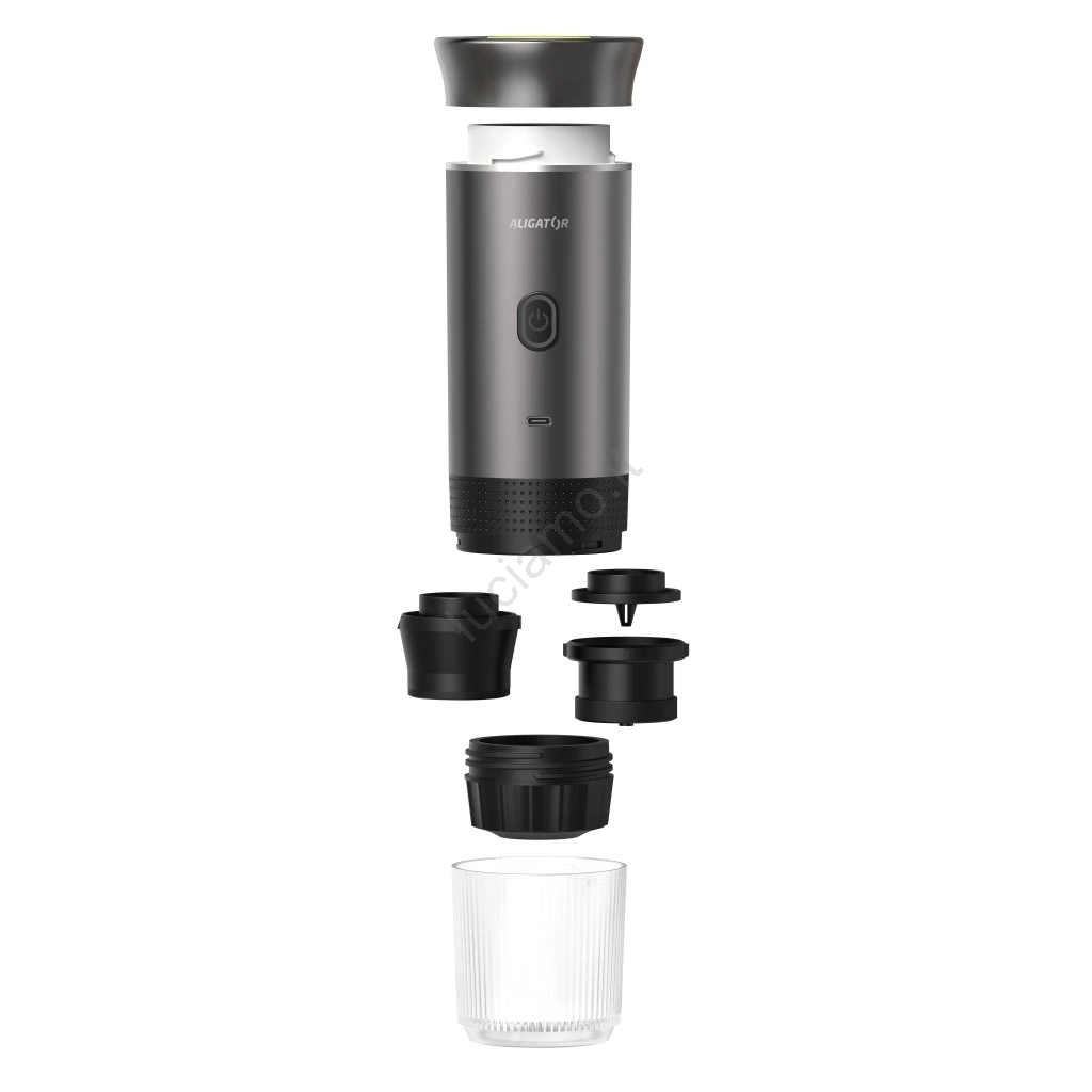 Aligator ACM002 - Macchinetta da caffè portatile ricaricabile PortaCaffé 3 in 1 72W/7500 mAh grigio