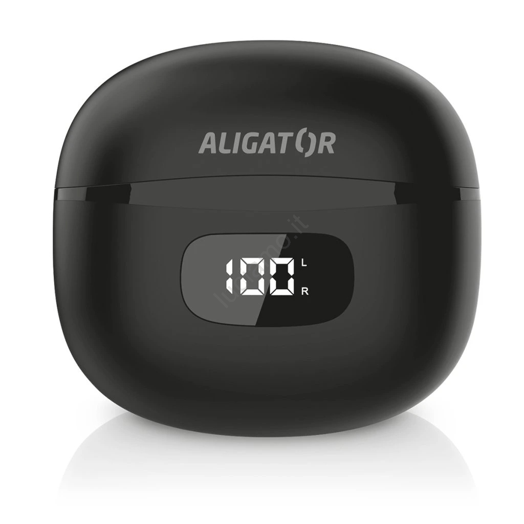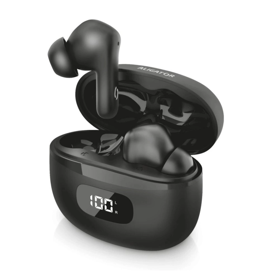 Aligator TWS08BK - Auricolari wireless con ANC, 200 mAh + 2x 30 mAh, IP40, nero