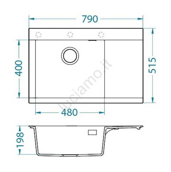 • Contenuto della confezione: lavello in granito, staffe di fissaggio, scarico a cestello 3 1/2, sifone con attacco per lavastoviglie.