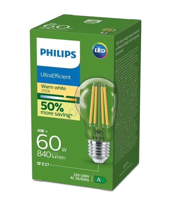 Lampadina LED Philips ULTRAEFFICIENT VINTAGE E27/4W/230V 2700K Il design di alta qualità garantisce un'illuminazione perfetta degli interni. La categoria E27 è dedicata alle lampadine con lo stesso attacco. Nel nostro e-shop è possibile scegliere tra lampadine con filamento tradizionale o moderne lampadine a LED, che sono più efficienti dal punto di vista energetico e hanno una durata maggiore.