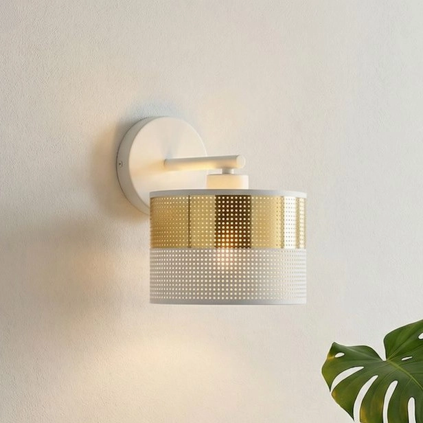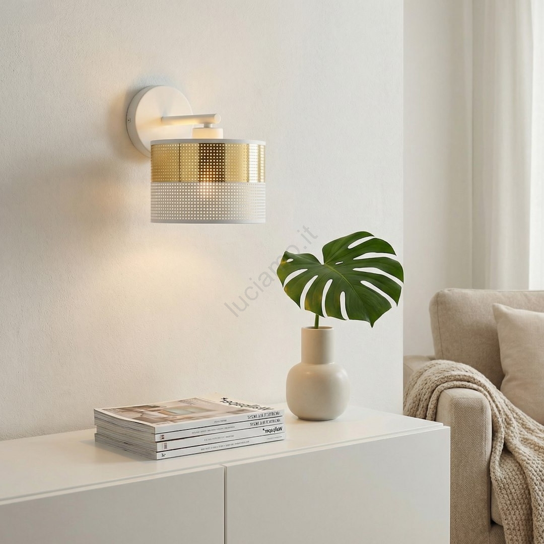 Applique LUX 1xE27/15W/230V bianca/dorata caratterizza un design gradevole e funzionale. Per la lampada è adatta una lampadina con attacco E27. Qui puoi acquistare altre lampadine a prezzi vantaggiosi. Avrai un'aggiunta interessante alla tua casa.