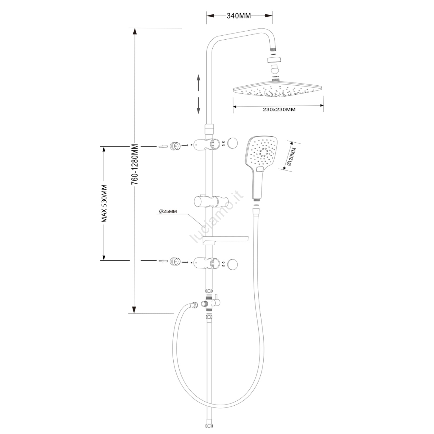 • Ha altezza regolabile e funzione doccia a pioggia.