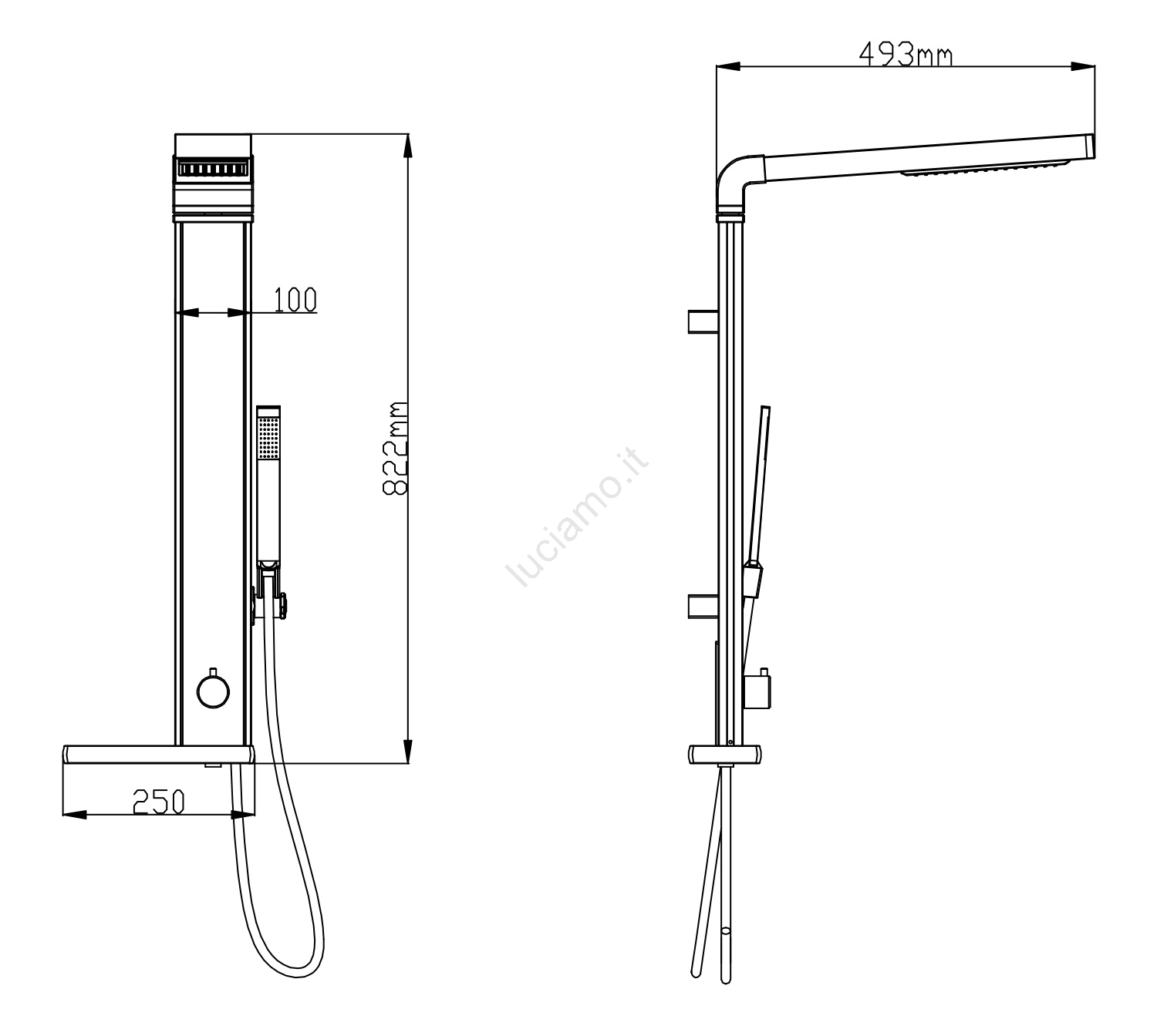 • La colonna doccia è progettata per il collegamento al miscelatore.