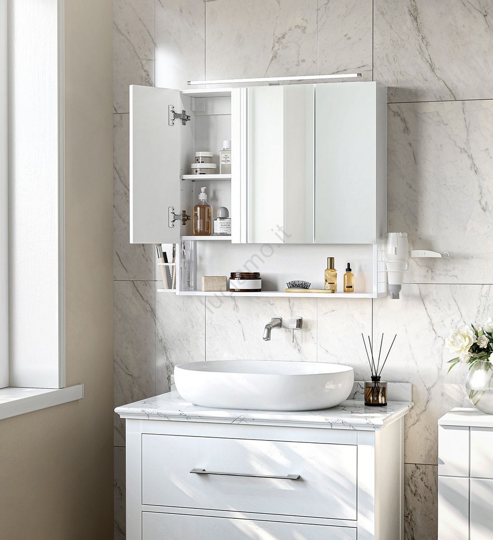 • Gli scaffali interni manterranno cosmetici e articoli per l'igiene sempre a portata di mano.