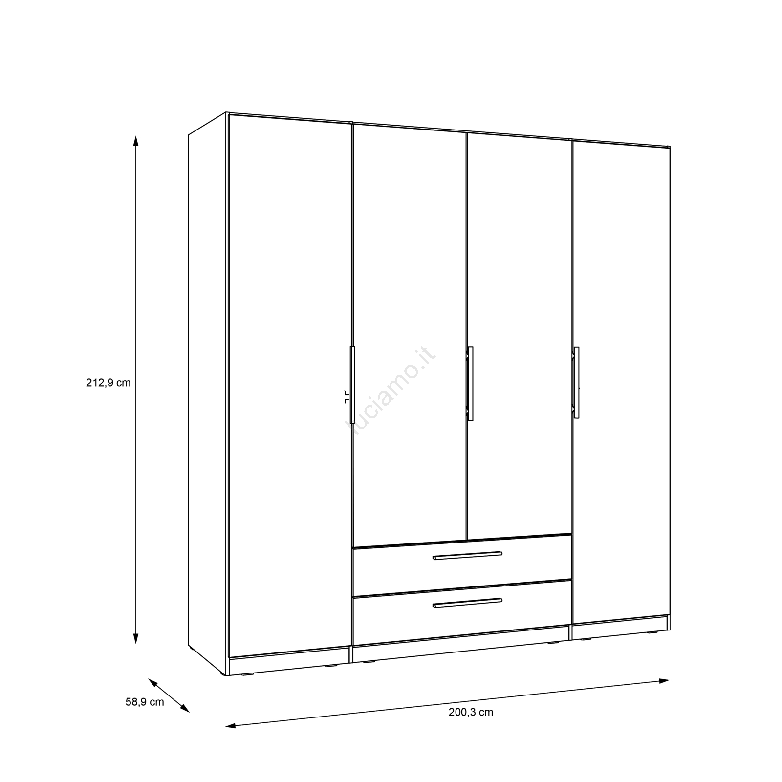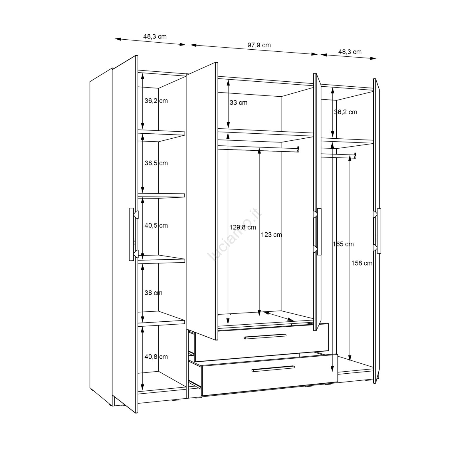 • Date al vostro ambiente il fascino di un armadio elegante e funzionale, caratterizzato da linee pulite, ottimizzazione dello spazio e un look senza tempo.