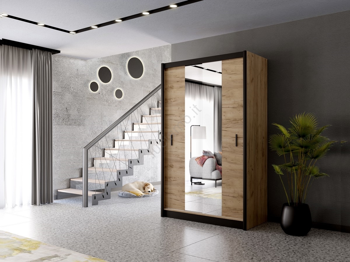 Armadio con specchio MIRO 150x215 cm rovere craft/nero