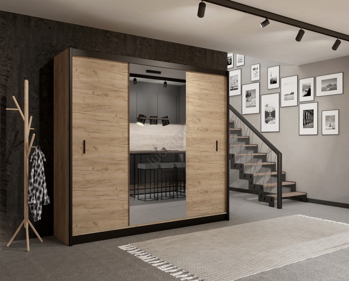 Armadio con specchio MIRO 250x215 cm rovere craft/nero