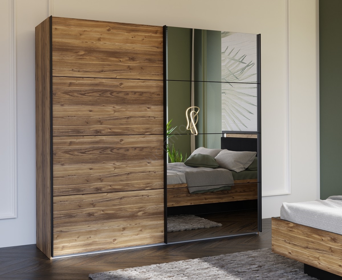 • Armadio con specchio OREN 220x210 cm rovere artisan