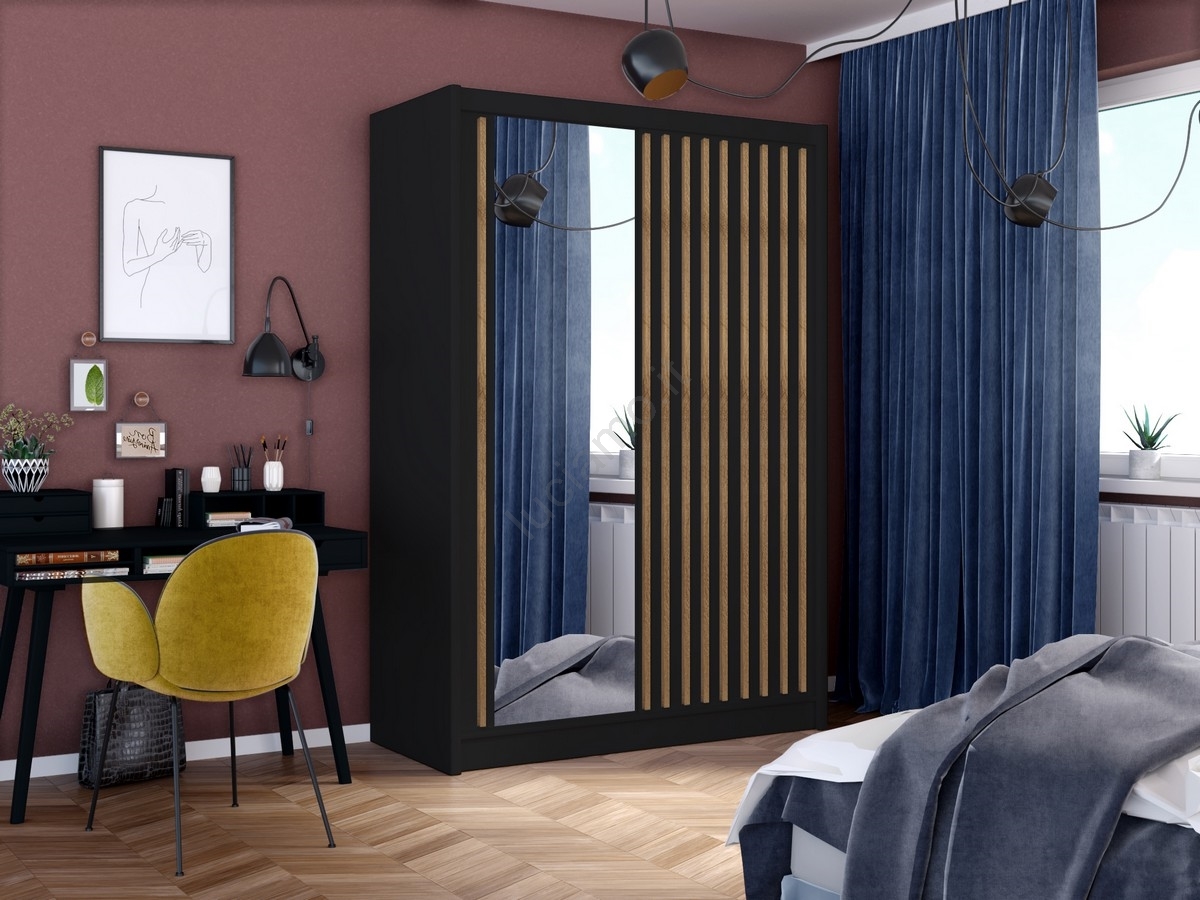 Armadio con specchio SANTINO 150x215 cm nero/quercia craft