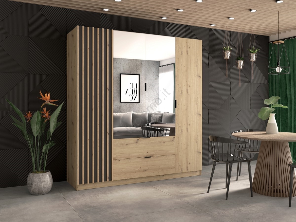 • Aggiungi al tuo ambiente il fascino di un armadio elegante e pratico, caratterizzato da linee pulite, ottimizzazione dello spazio e un design senza tempo.