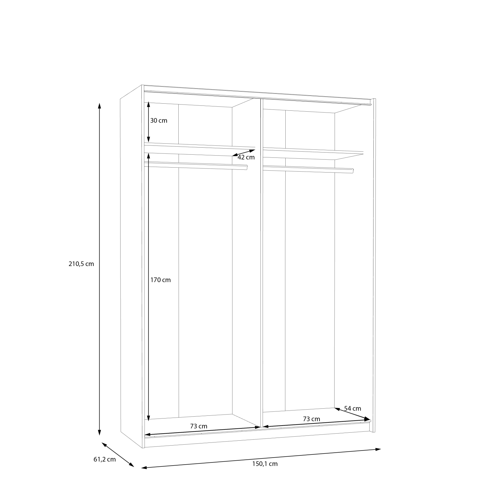Armadio guardaroba KARO 150x210 cm bianco/rovere artisan