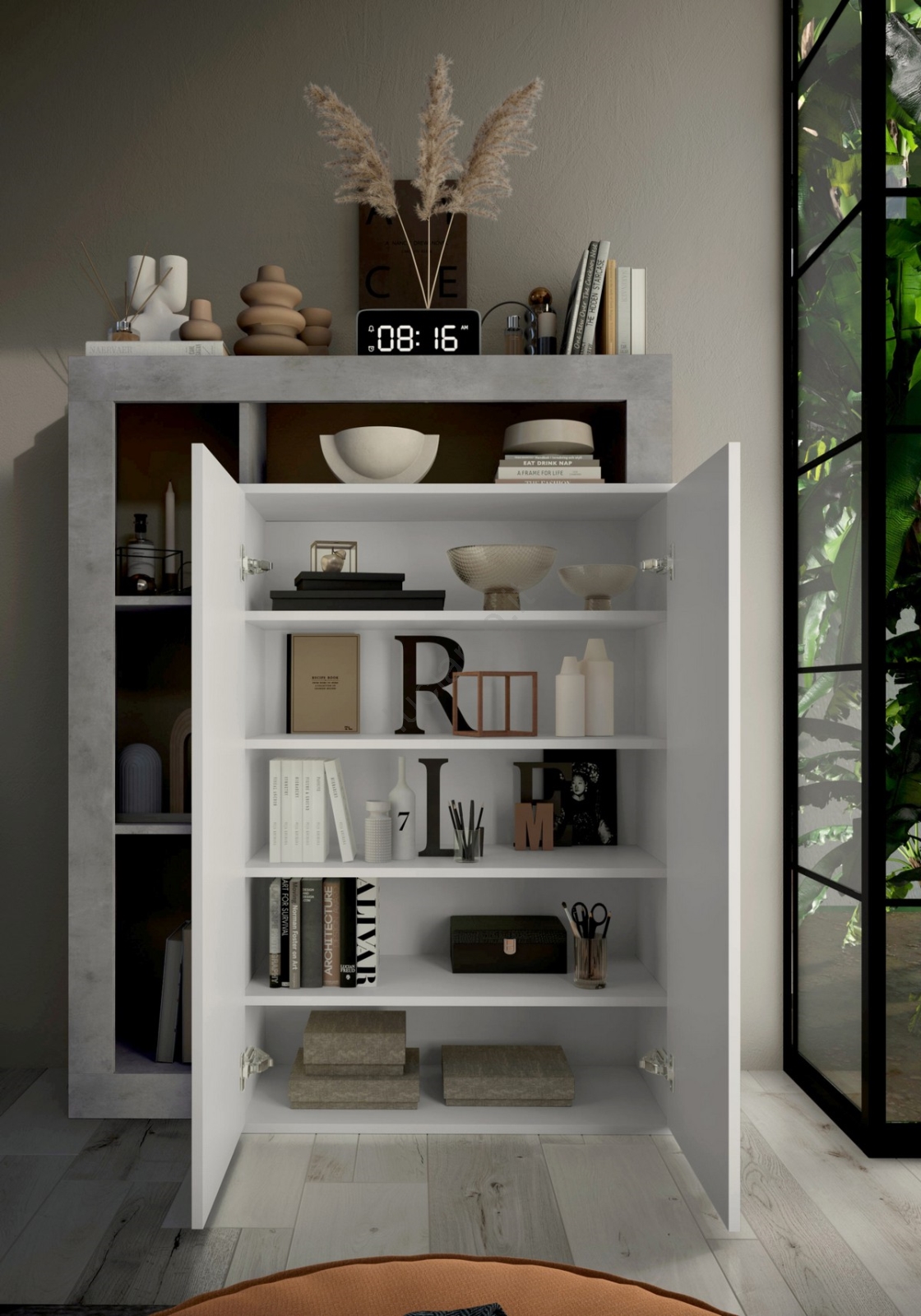 Armadio LENOR bianco/grigio cemento