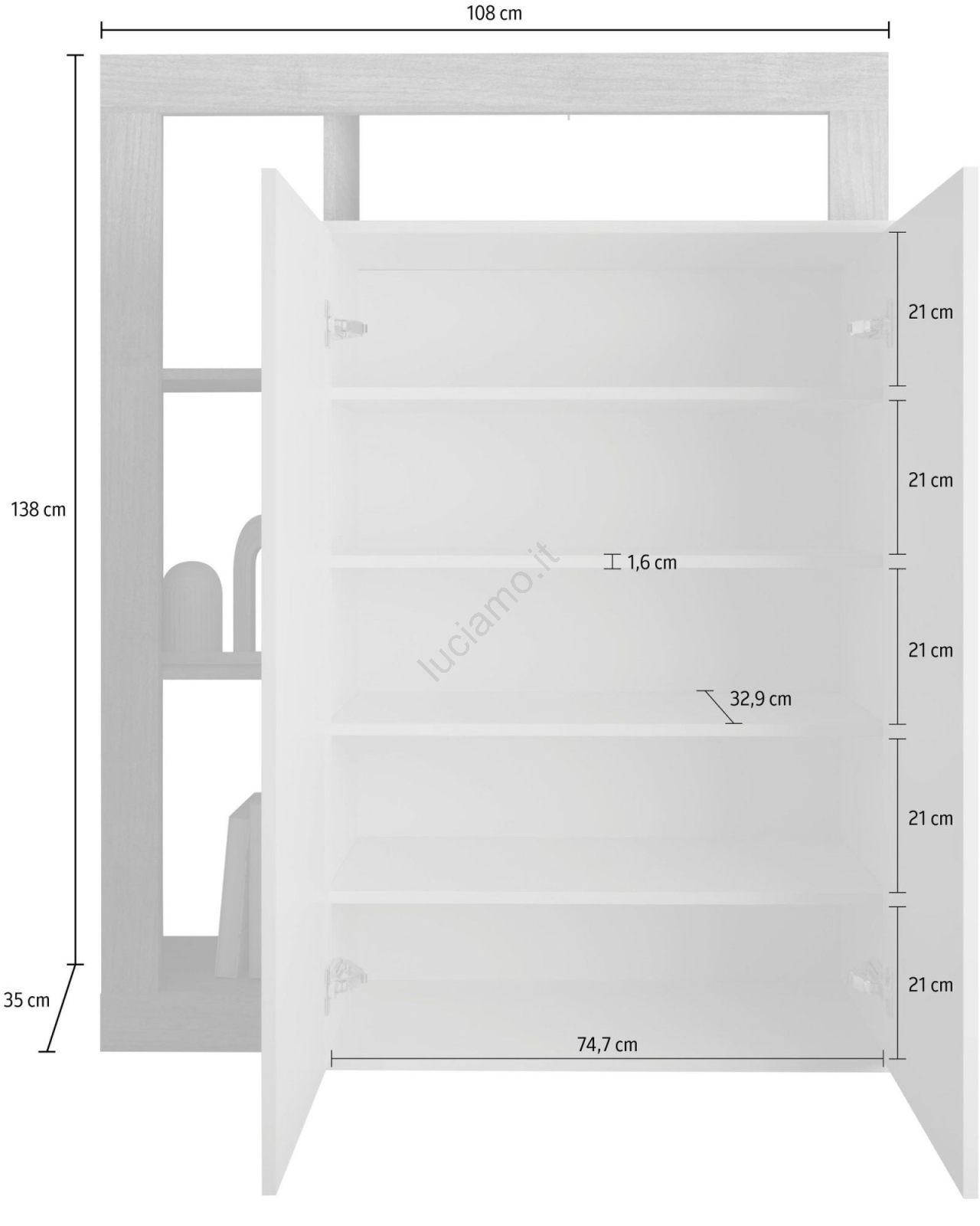 • Dispone di 4 ripiani aperti e 5 scomparti interni per riporre borse, scarpe e oggetti stagionali.