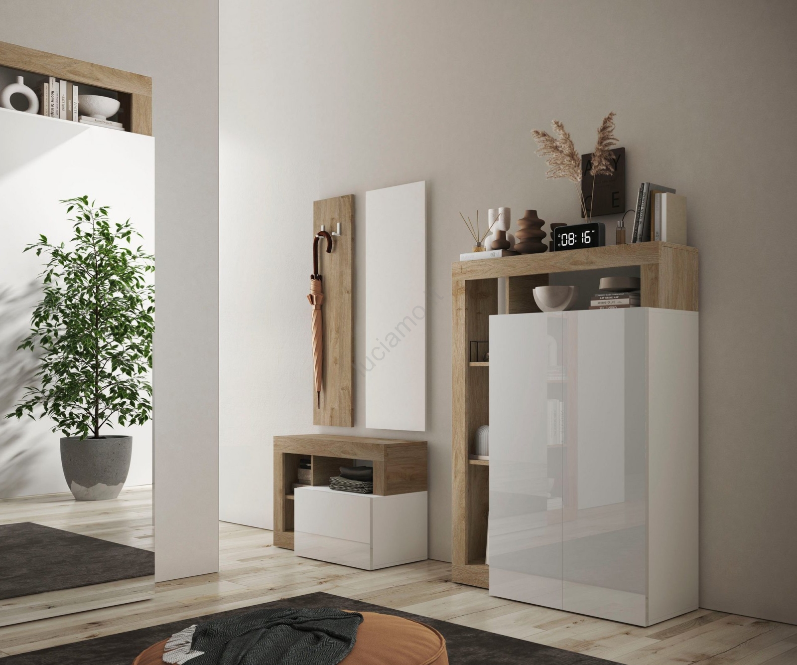 • Dotato di 4 ripiani aperti e 5 scomparti interni per riporre borse, scarpe e capi stagionali.