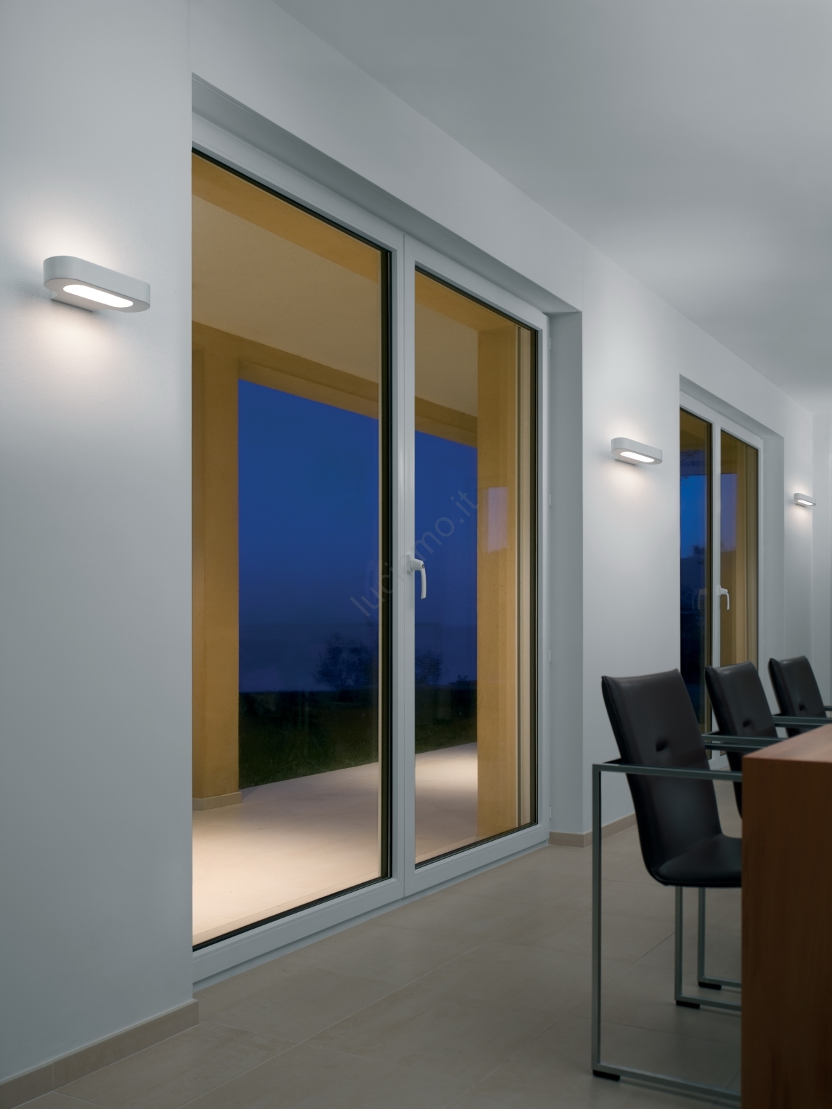 • L'illuminazione è realizzata in metallo pressato verniciato: due parti rettangolari sono collegate da due estremità arrotondate in alluminio temprato.