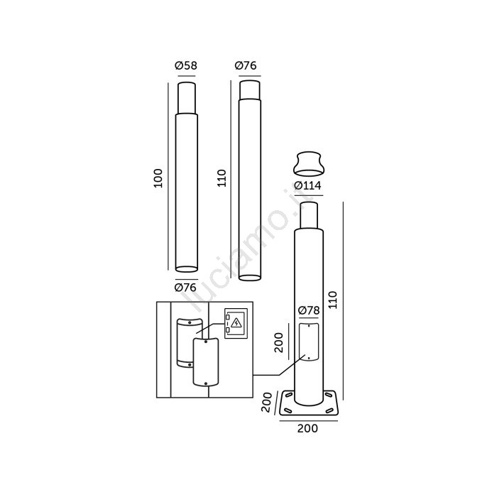 Asta metallica per palo d'illuminazione esterna BASE 3 m grigia