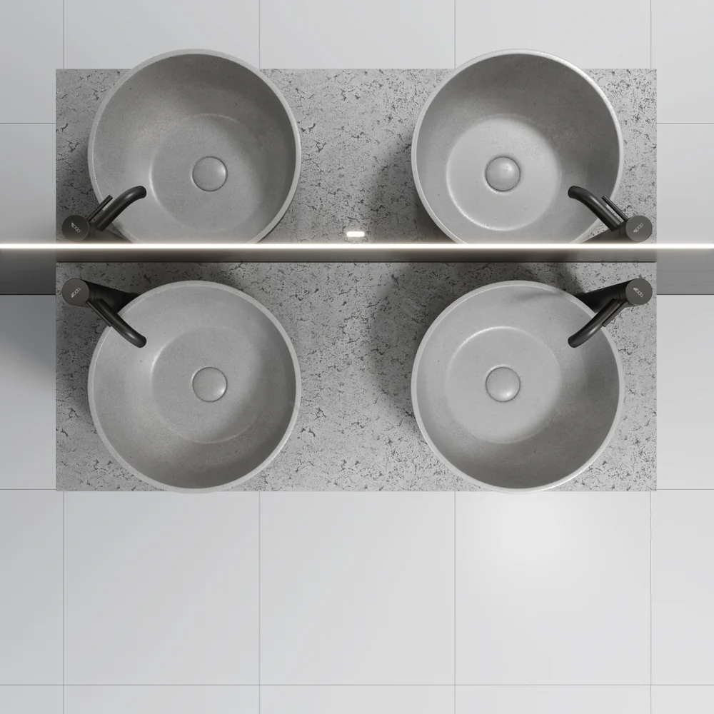 • Realizzato in cemento naturale al 100% con una finitura superficiale che protegge il piano dall'assorbimento dell'acqua.