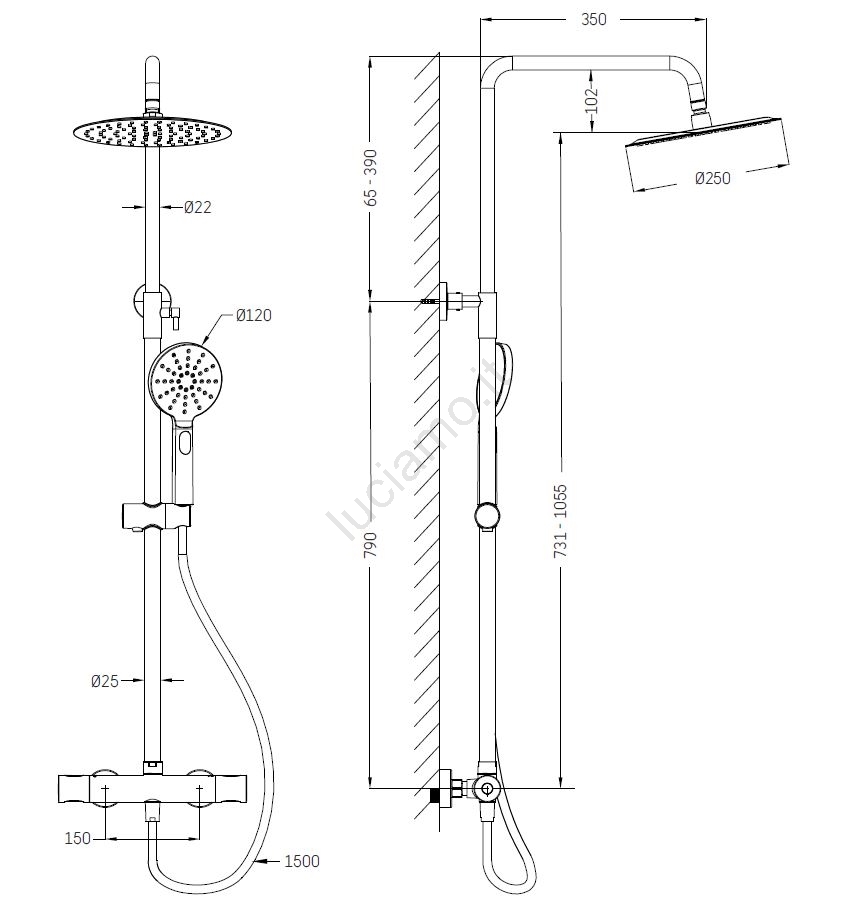 • Il set comprende un miscelatore termostatico in ottone massiccio.