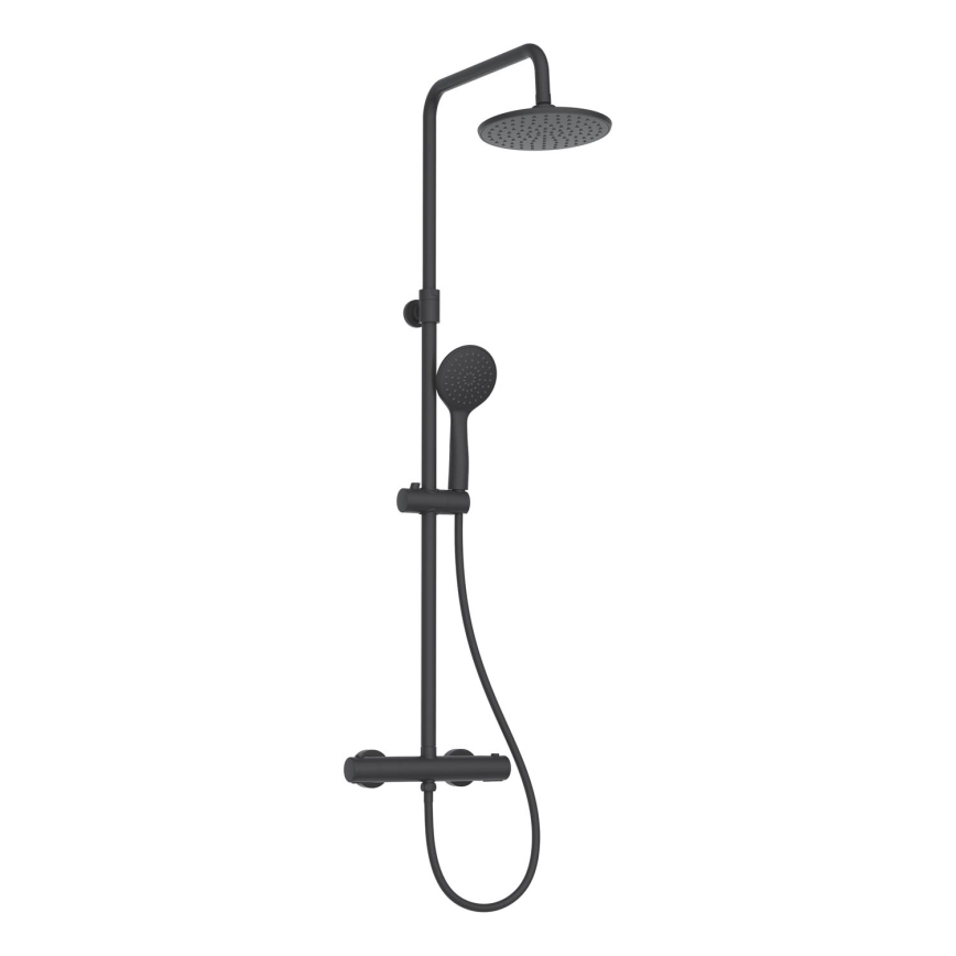 • Asta doccia e soffione superiore in acciaio inossidabile con finitura PVD.