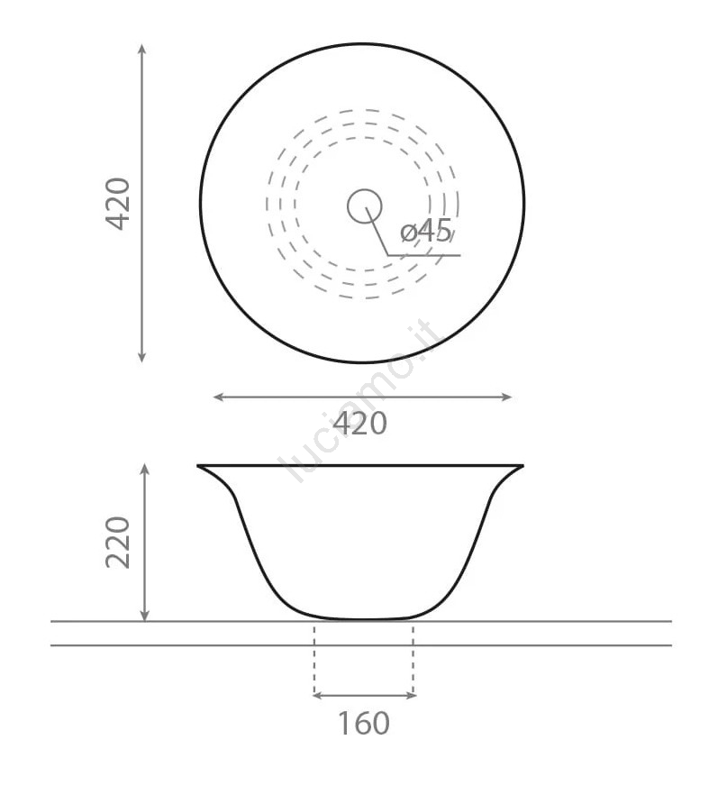 • Lavabo moderno ed elegante senza troppopieno.