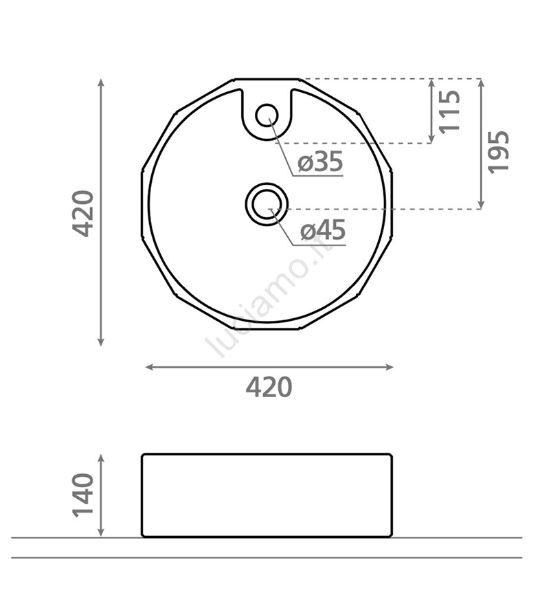 Bathco 4158 - Lavabo da appoggio CIRCUS Ø 42 cm porcellana/bianco