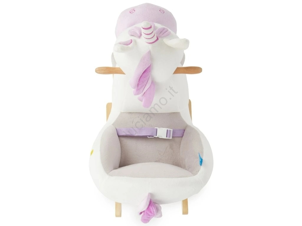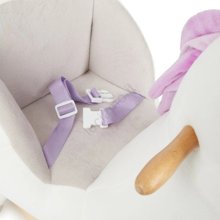 • L'unicorno è dotato di un sedile morbido e confortevolmente imbottito con cintura di sicurezza, che assicura massimo comfort e protezione anche ai più piccoli.
