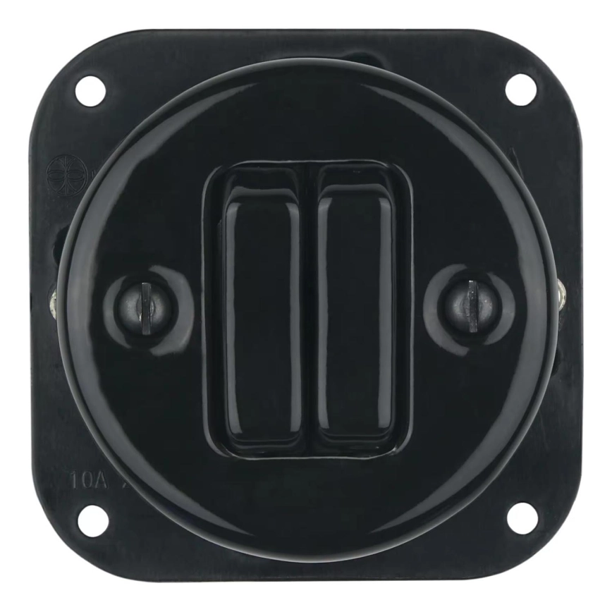Bohemia-Design - Interruttore doppio in porcellana stile retrò senza cornice n. 5 nero