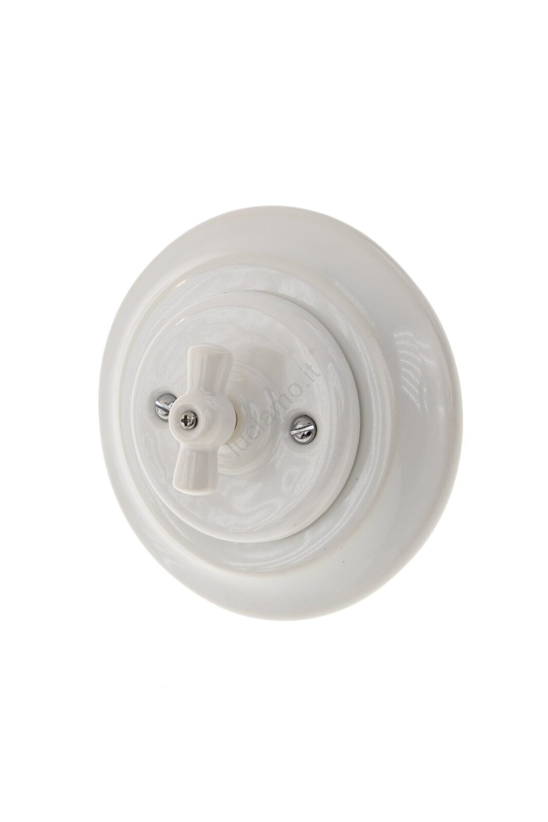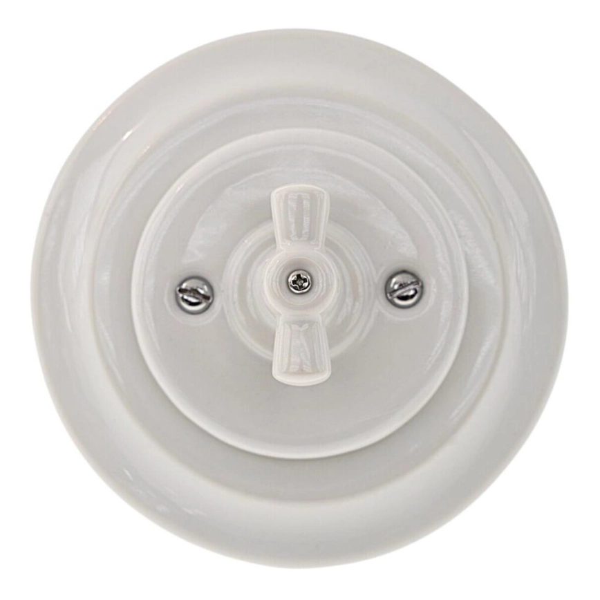 Bohemia-Design - Interruttore rotativo in porcellana stile retrò con cornice n. 1, bianco