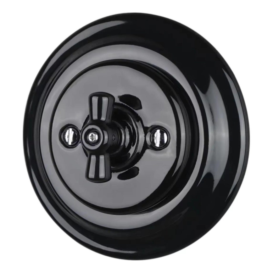 Bohemia-Design - Interruttore rotativo retrò in porcellana con placca n. 1, nero