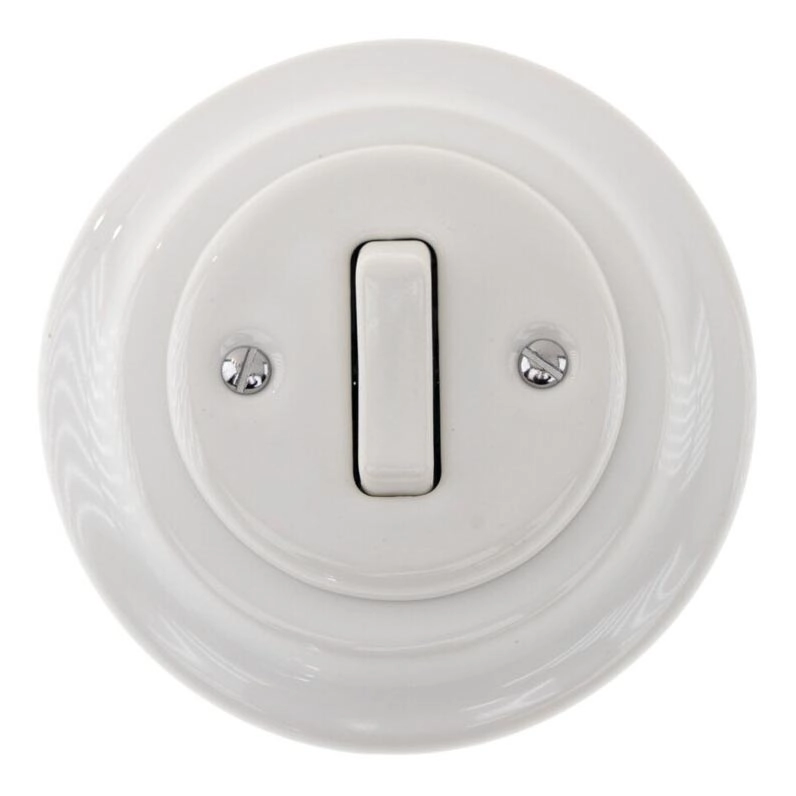 Bohemia-Design - Interruttore singolo in porcellana in stile retrò con cornice n. 6, bianco