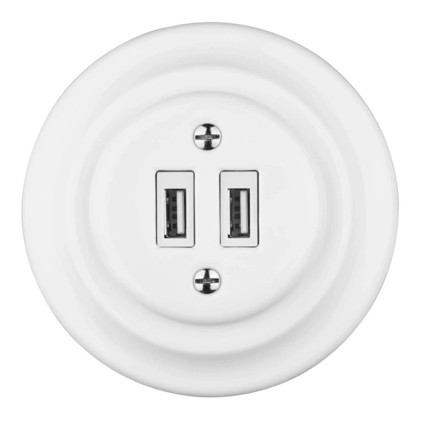 Bohemia-Design - Presa di alimentazione USB in porcellana dal design retrò con placca, 2x USB-A, bianca