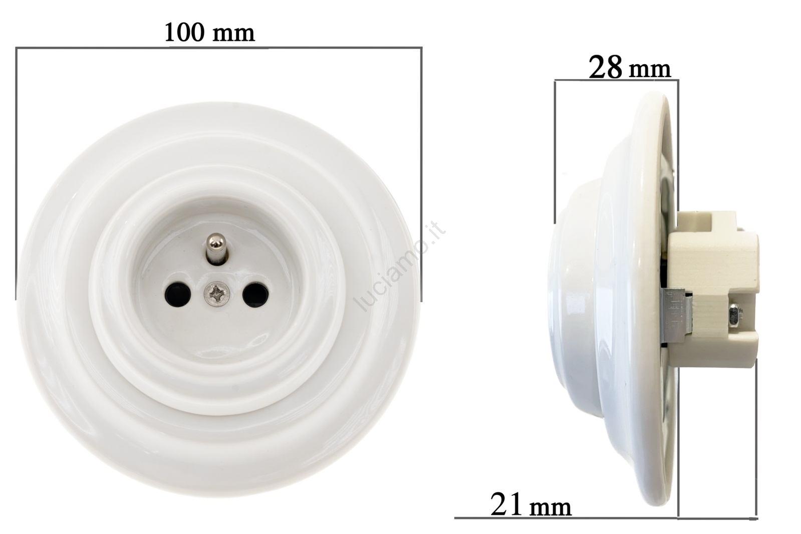 Bohemia-Design - Presa da parete in porcellana in stile retrò con cornice SCHUKO 250V/16A bianca