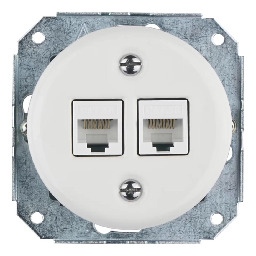 Bohemia-Design - Presa Ethernet in porcellana stile retrò senza cornice, 2x CAT.5E, bianca