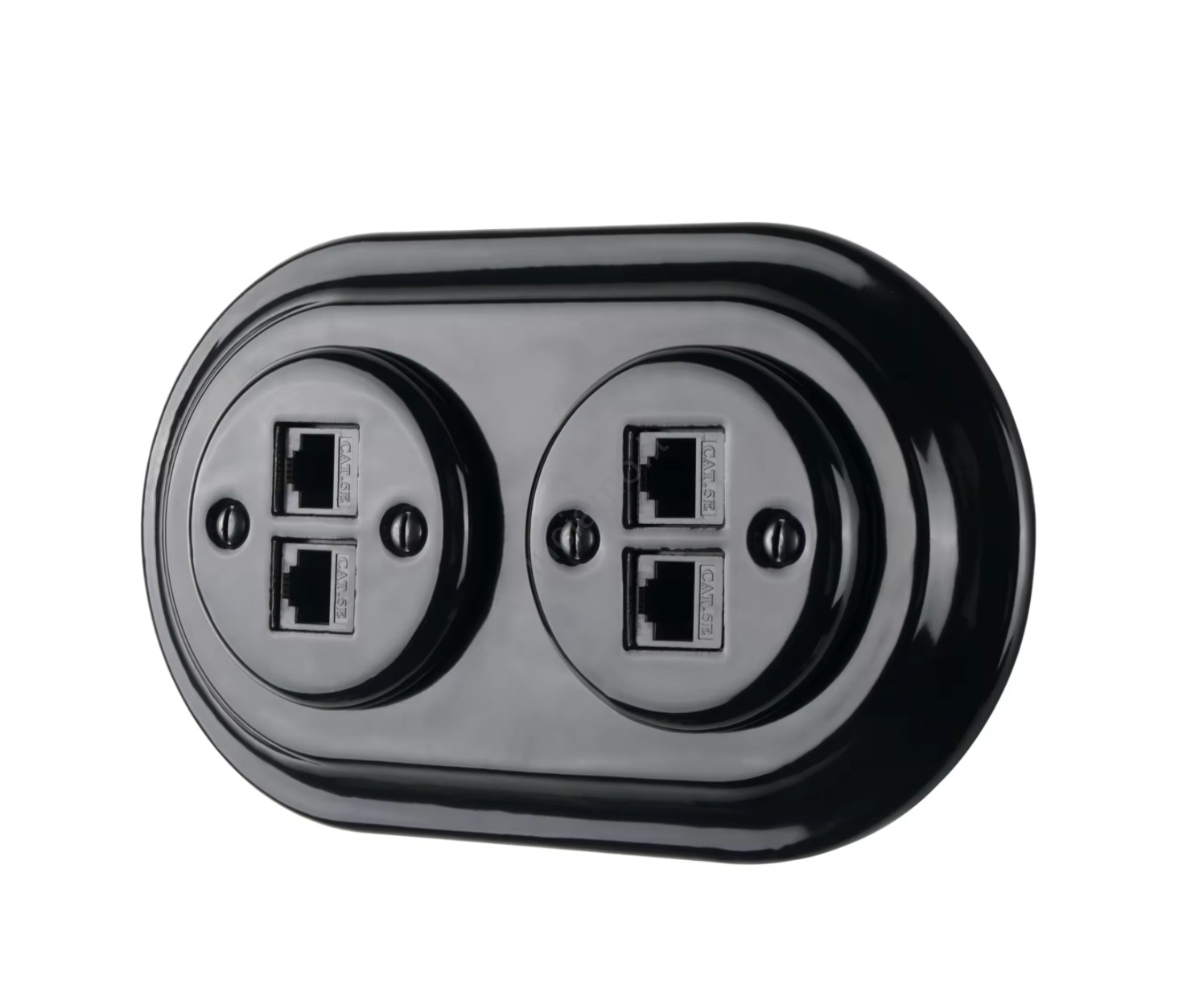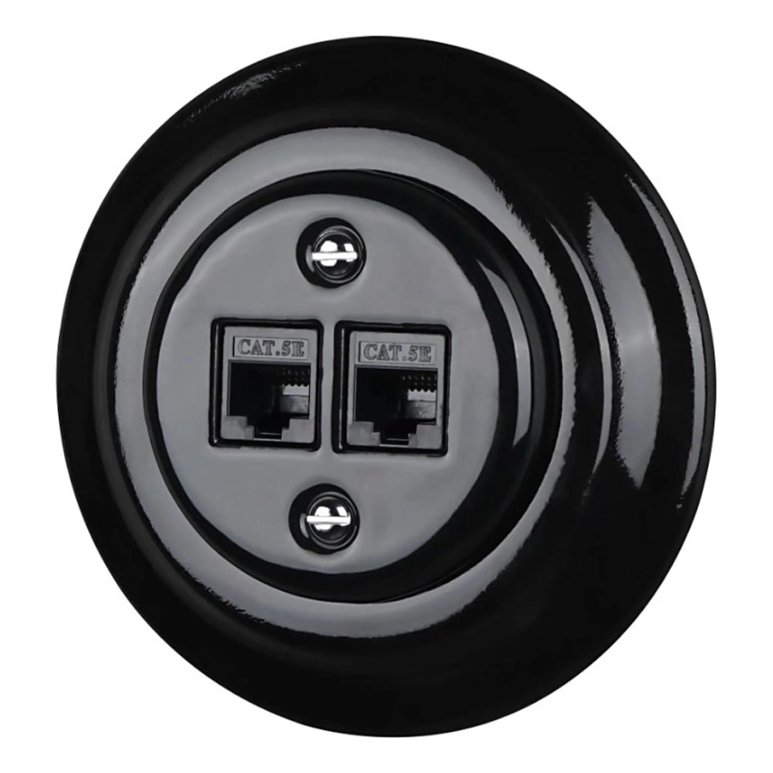Bohemia-Design - Presa Ethernet retrò in porcellana con cornice 2x CAT.5E nera