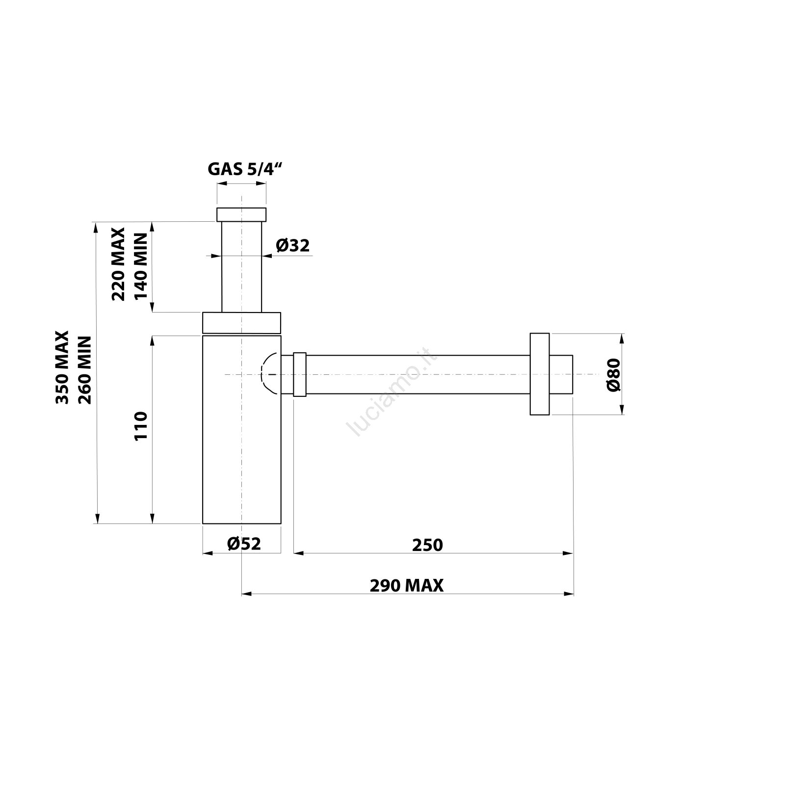 • Il diametro dello scarico è di 32 mm.