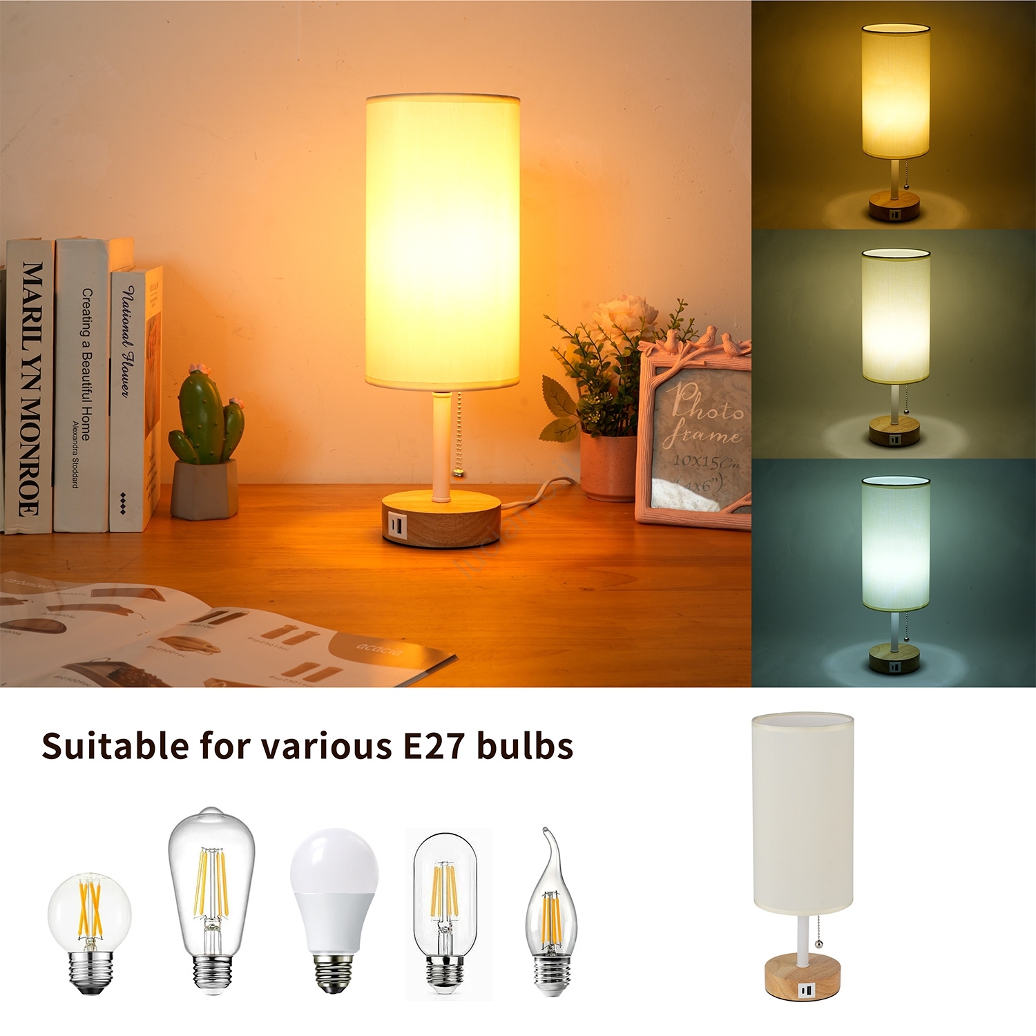 Brilagi - Lampada da tavolo con porta USB TABLON 1xE27/25W/230V rovere/bianco/crema caratterizza un design gradevole e funzionale. Per la lampada è adatta una lampadina con attacco E27. Qui puoi acquistare altre lampadine a prezzi vantaggiosi. Avrai un'aggiunta interessante alla tua casa.