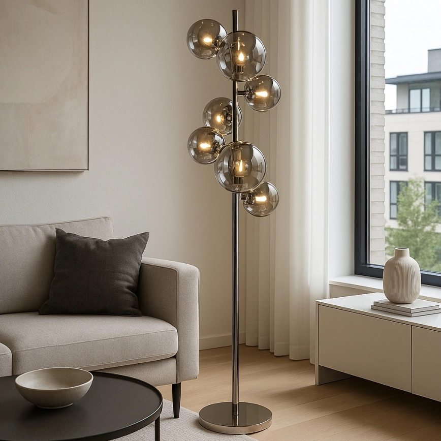 • Brilagi - Lampada da terra LED MILLA 7xG9/3W/230V nero cromato/vetro fumé