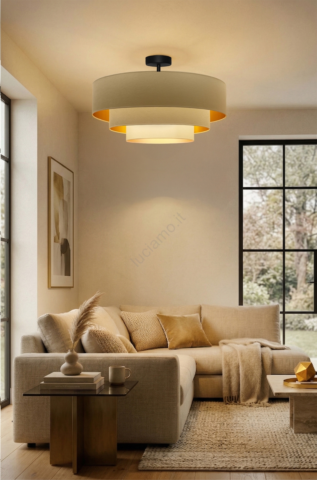 • Brilagi - Lampadario a plafone LUNETA 3xE27/60W/230V Ø 80 cm beige/oro