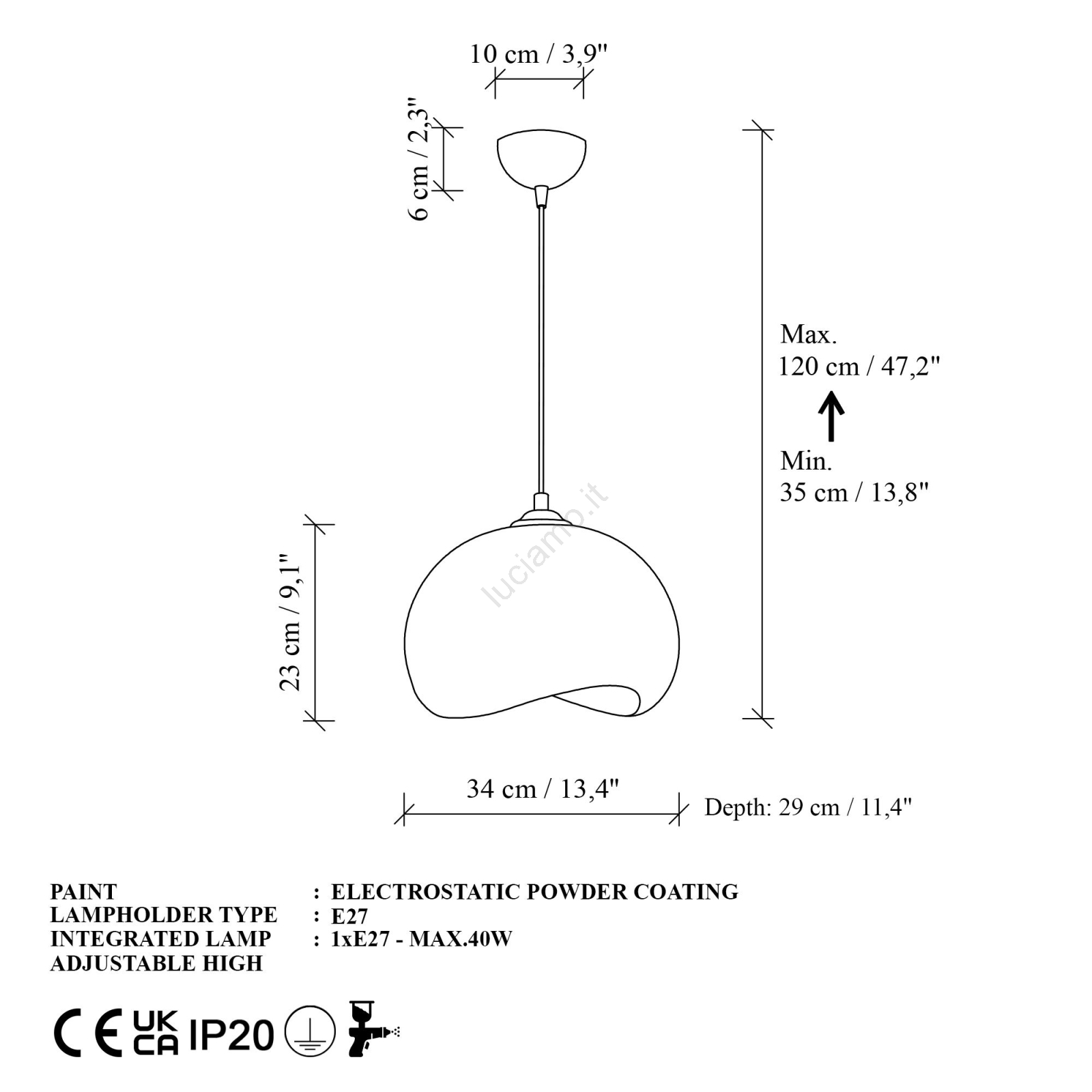 Brilagi - Lampadario a sospensione con cavo WABI SABI 1xE27/40W/230V Ø 34 cm bianco