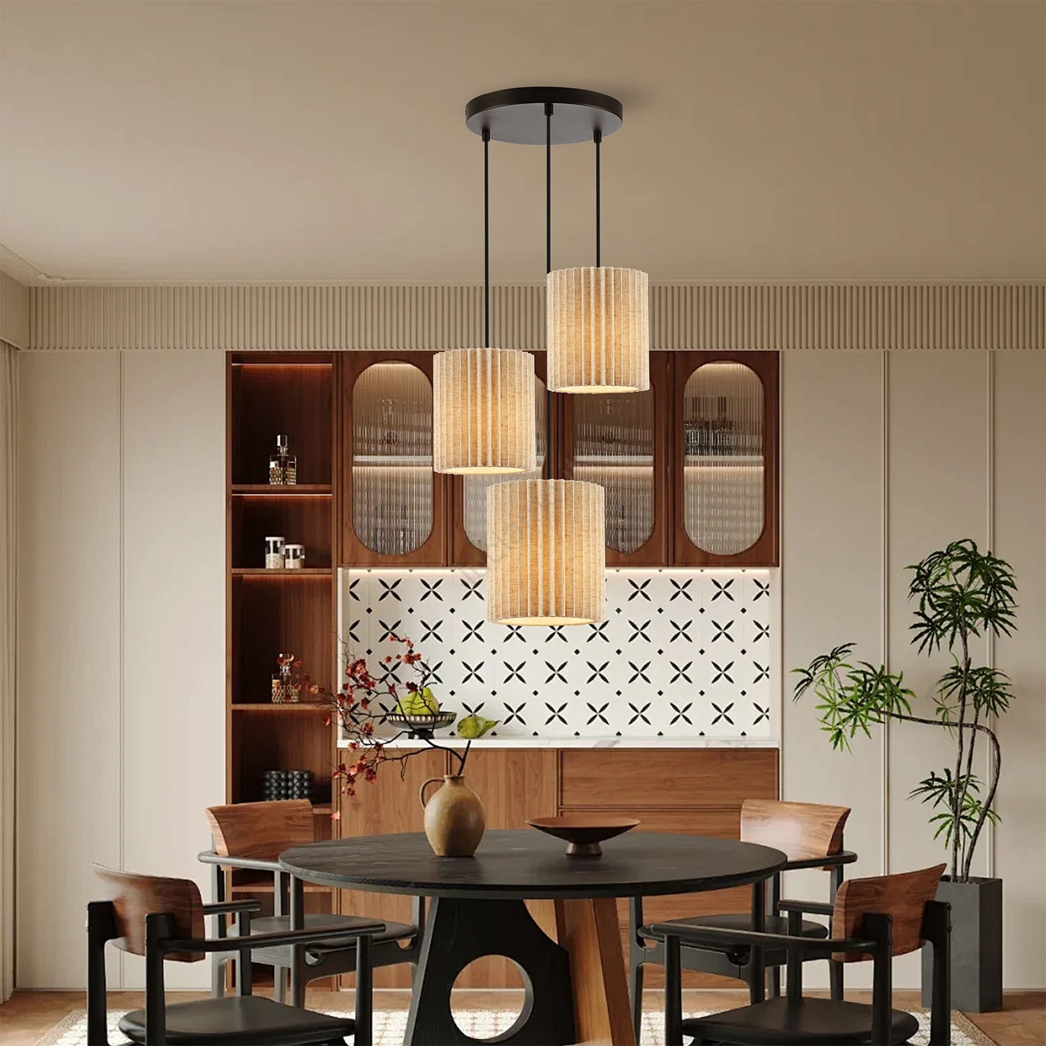 Brilagi - Lampadario sospeso a cavo NORDIC WAVE 3xE27/15W/230V diam. 38 cm lino/nero caratterizza un design gradevole e funzionale. Per la lampada è adatta una lampadina con attacco E27. Qui puoi acquistare altre lampadine a prezzi vantaggiosi. Avrai un'aggiunta interessante alla tua casa.