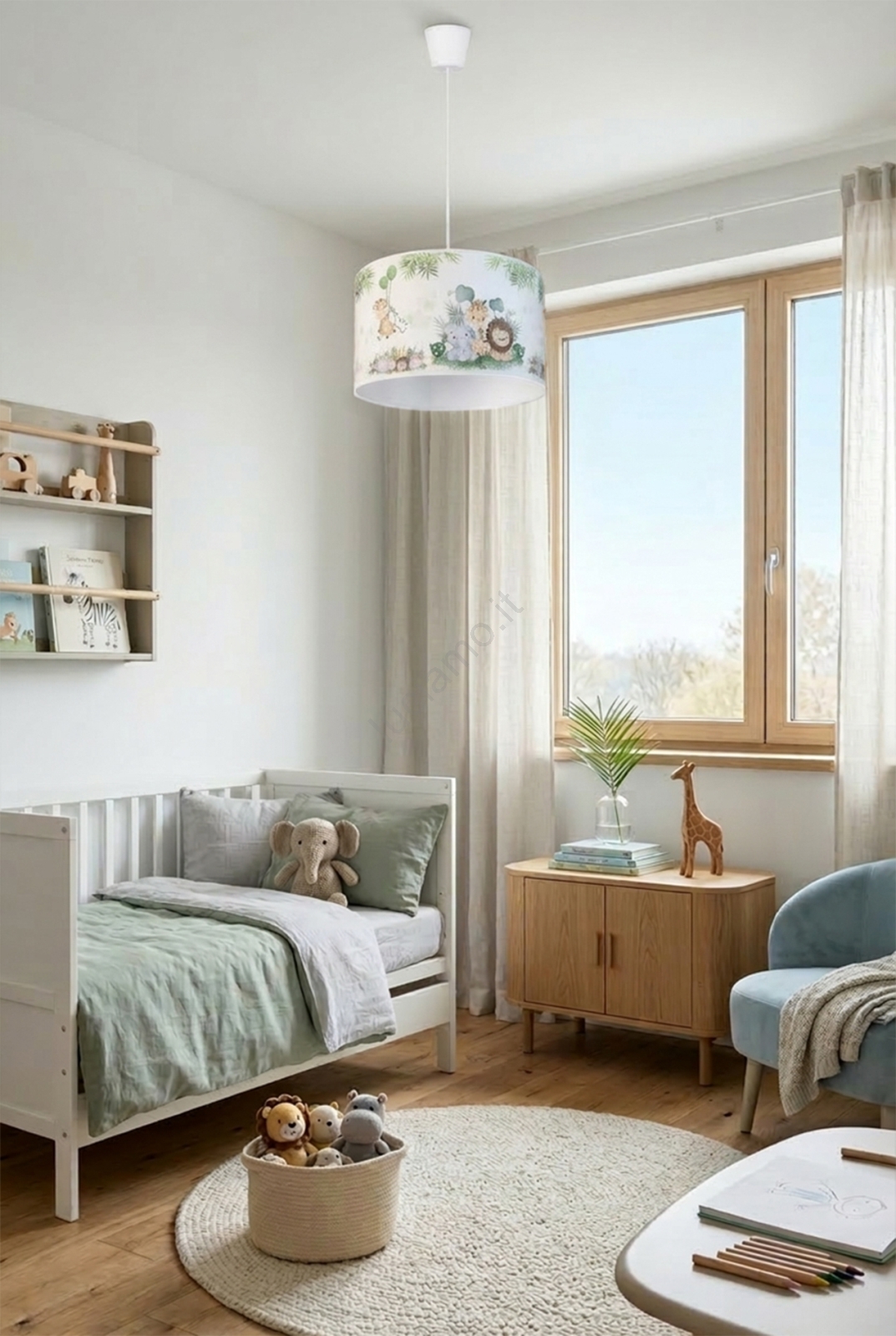 • Brilagi - Lampadario LED per bambini a sospensione con cavo BOBO 1xE27/10W/230V Ø 35 cm bianco/giungla