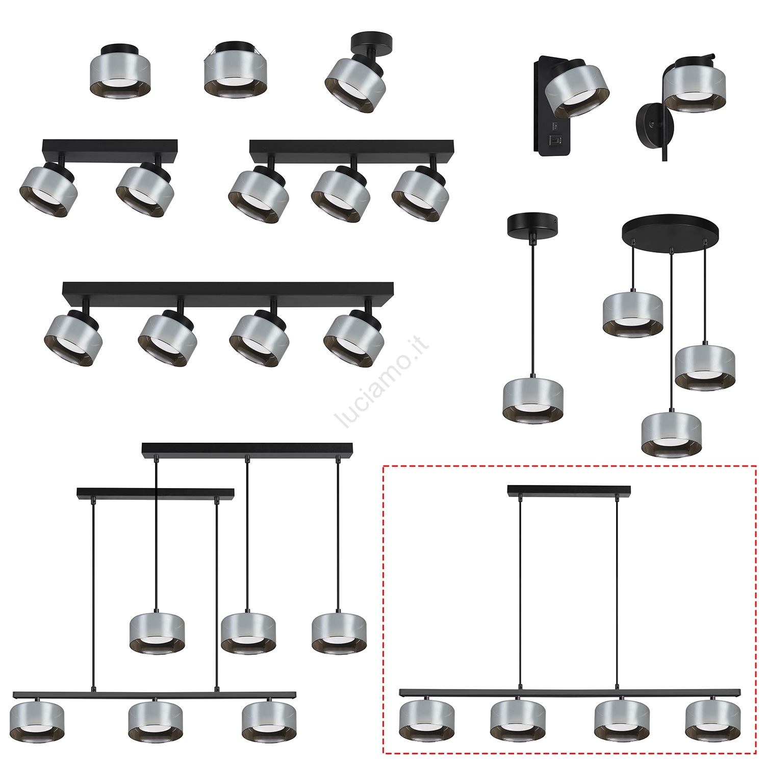 Brilagi - LED Lampadario sospeso su cavo AURA LUX 4xGX53/30W/230V nero/fumé